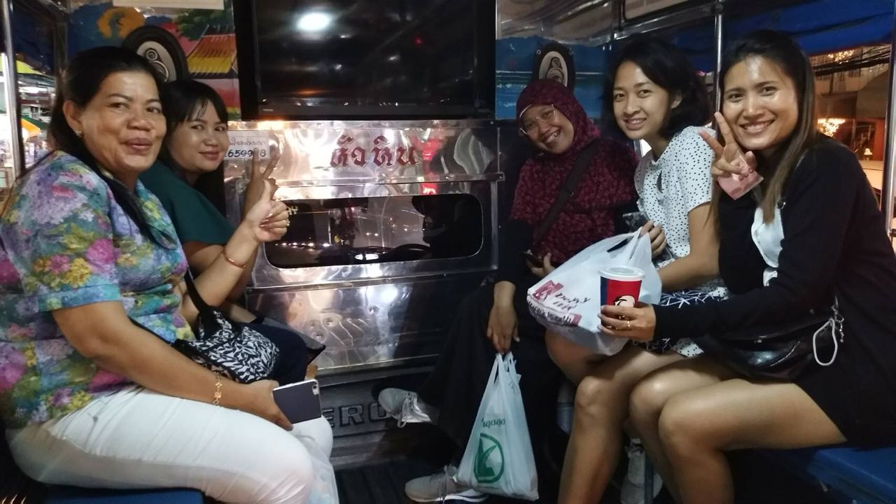 Sesuai janji via email saya dijemput panitia di pintu kedatangan gate 4 lantai 2. Setelah celingak-celinguk ketemulah sama dua cewek cakep, Ms Natchanan n temennya plus peserta dari Myanmar. Setelah kenalan, minta maaf karena saya telat sejam, mereka kemudian nganterin kita ke bus menuju Hua Hin, rada kaget karena ketika naik bus, panitia gak ikutan naik, cuma nitipin kita ke kondektur bus, saya sama Thi (peserta dari Myanmar) cuma liat-liatan bingung.