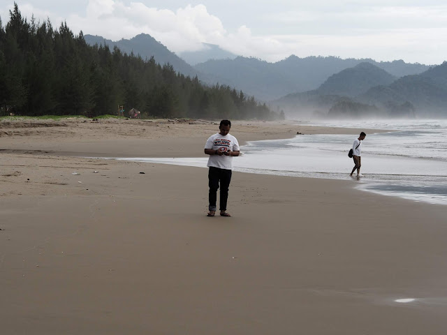 Pantai pertama yang kami kunjungi terletak di Desa Meunasah Masjid, Lhoknga, Kabupaten aceh Besar merupakan primadona pariwisata Aceh sebelum Tsunami. Dan pertama kalinya melihat ombak disini kami terkesima dan tak berani mendekat. Pertama karena ombak terlihat cukup besar dan kedua karena panas luar biasa. Padahal pengunjung yang berenang dan bermain air terlihat cukup banyak, dari anak kecil sampai orang dewasa. Sedikit jaim dengan panas hingga kami memilih berteduh di gubuk-gubuk pinggir pantai sambil menyeruput kelapa muda. Ya serius, karena belum terbiasa dengan panasnya Aceh yang menyengat, kami cuma foto-foto cantik di tempat teduh, haha.